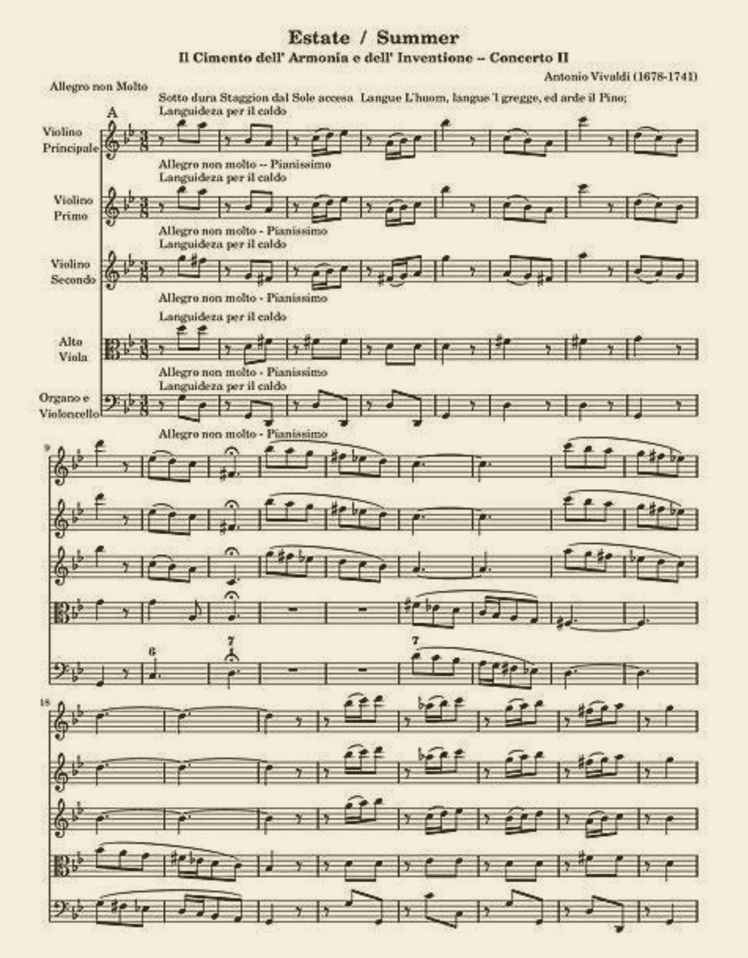 TRINITAPOLI ..:: L’Estate è il concerto contenuto nel ciclo delle “Quattro Stagioni” creato da Vivaldi nel 1725. E’ stato scritto per violino, archi e basso continuo, nella tonalità di Sol minore ed è formato da 3 movimenti.