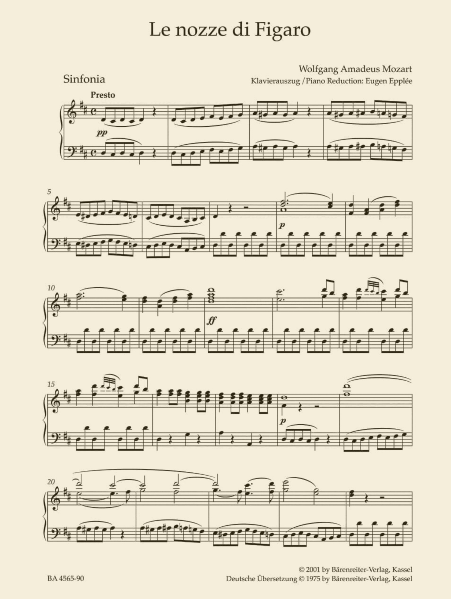 musicali di Le nozze di Figaro di Wolfgang Amadeus Mozart.